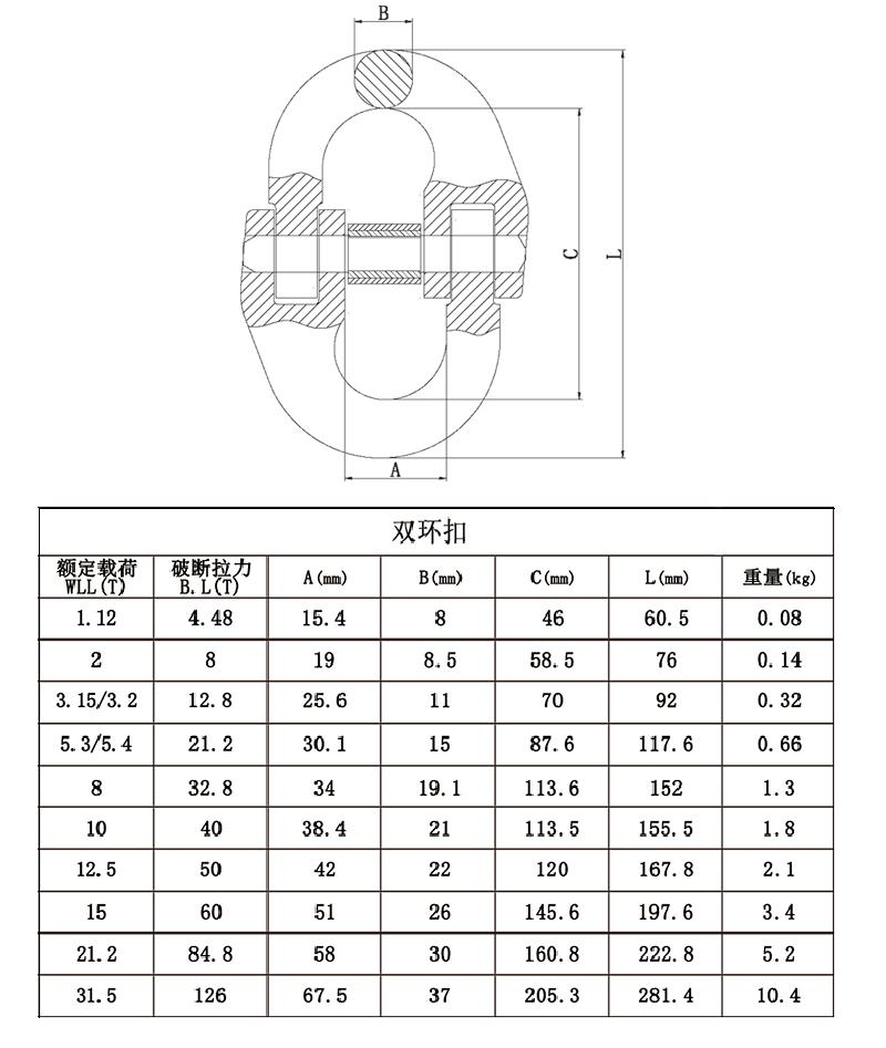 羊角安全鉤技術參數(shù): ITEM NO. WLL/T B.L/T A B C D 8-SL1002-06 1.12 4.48 8 29 34 20 95.5 8-SL1002-7/8 2 8 9 34 46 24 121 8-SL1002-10 3.15 12.6 11.5 44 52 29 146 8-SL1002-13 5.4 21.6 15.5 52 65.5 40.2 182 8-SL1002-16 8 32 18.5 60 82