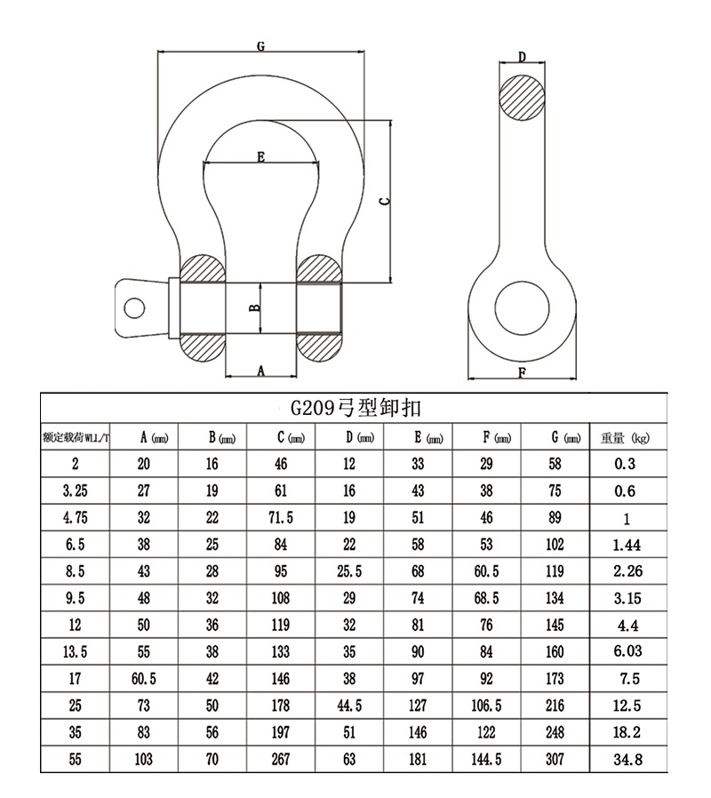 羊角安全鉤技術(shù)參數(shù): ITEM NO. WLL/T B.L/T A B C D 8-SL1002-06 1.12 4.48 8 29 34 20 95.5 8-SL1002-7/8 2 8 9 34 46 24 121 8-SL1002-10 3.15 12.6 11.5 44 52 29 146 8-SL1002-13 5.4 21.6 15.5 52 65.5 40.2 182 8-SL1002-16 8 32 18.5 60 82